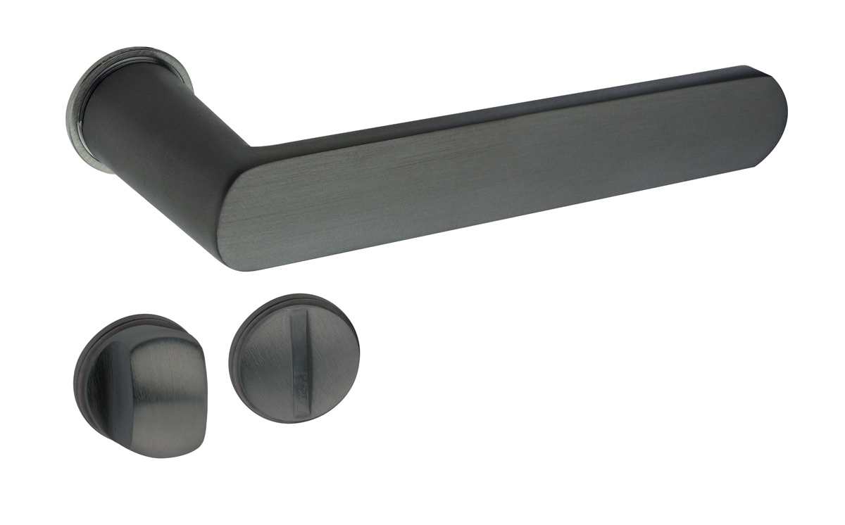 Maniglia su rosetta tonda con bocchetta foro chiave, Maniglia su rosetta tonda con bocchetta foro cilindro, Maniglia su rosetta tonda con nottolino oliva libero/occupato |